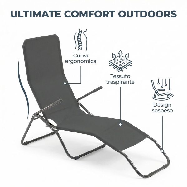 €22,90 - €74,90Fascia di prezzo: da €22,90 a €74,90SDRAIO DA GIARDINO BARBARA RECLINABILE 6 POSIZIONI CUSCINO IMBOTTITO