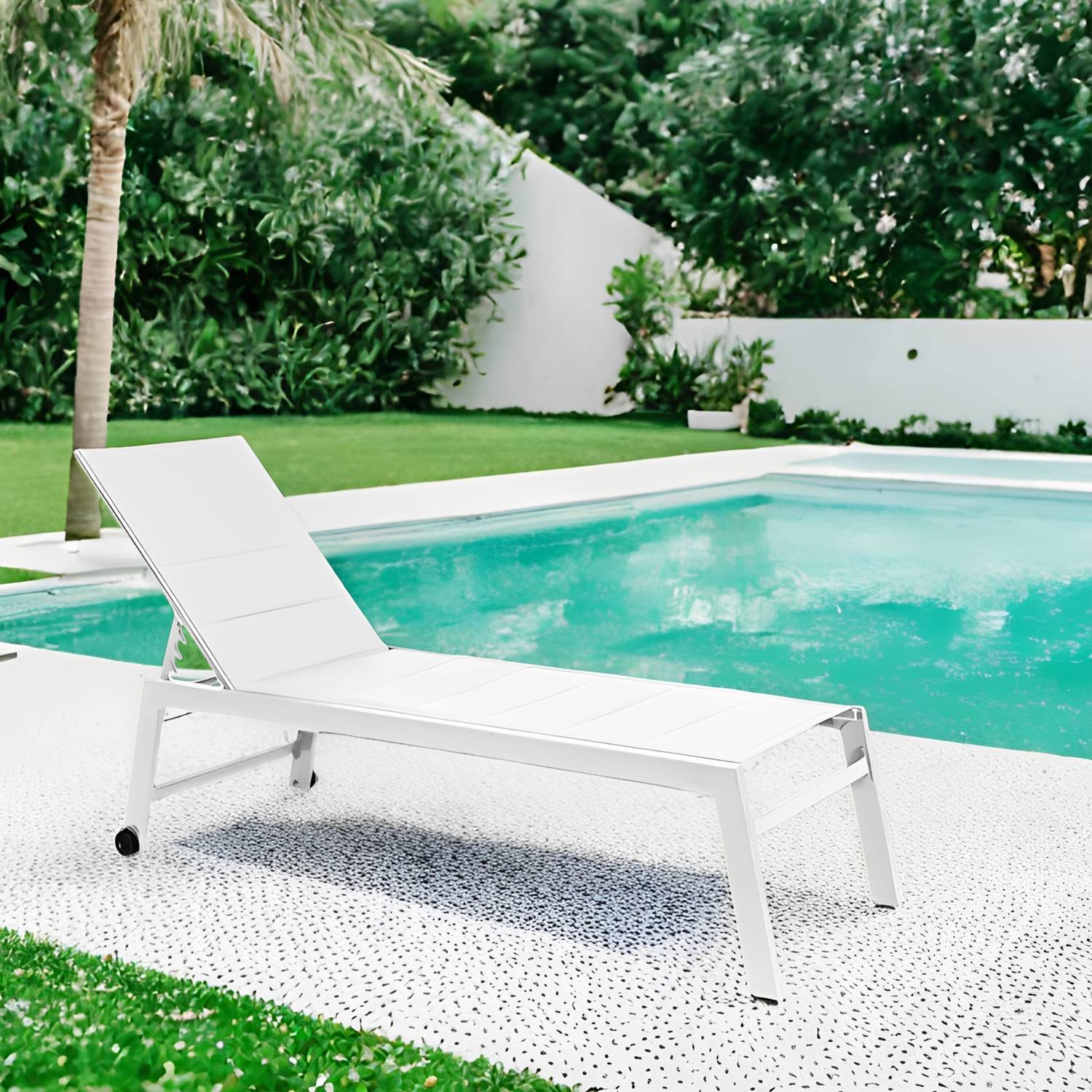 Home Giardino e Arredo Arredamento da giardino LETTINO STRETCH LOUNGE CON RUOTE IN ALLUMINIO