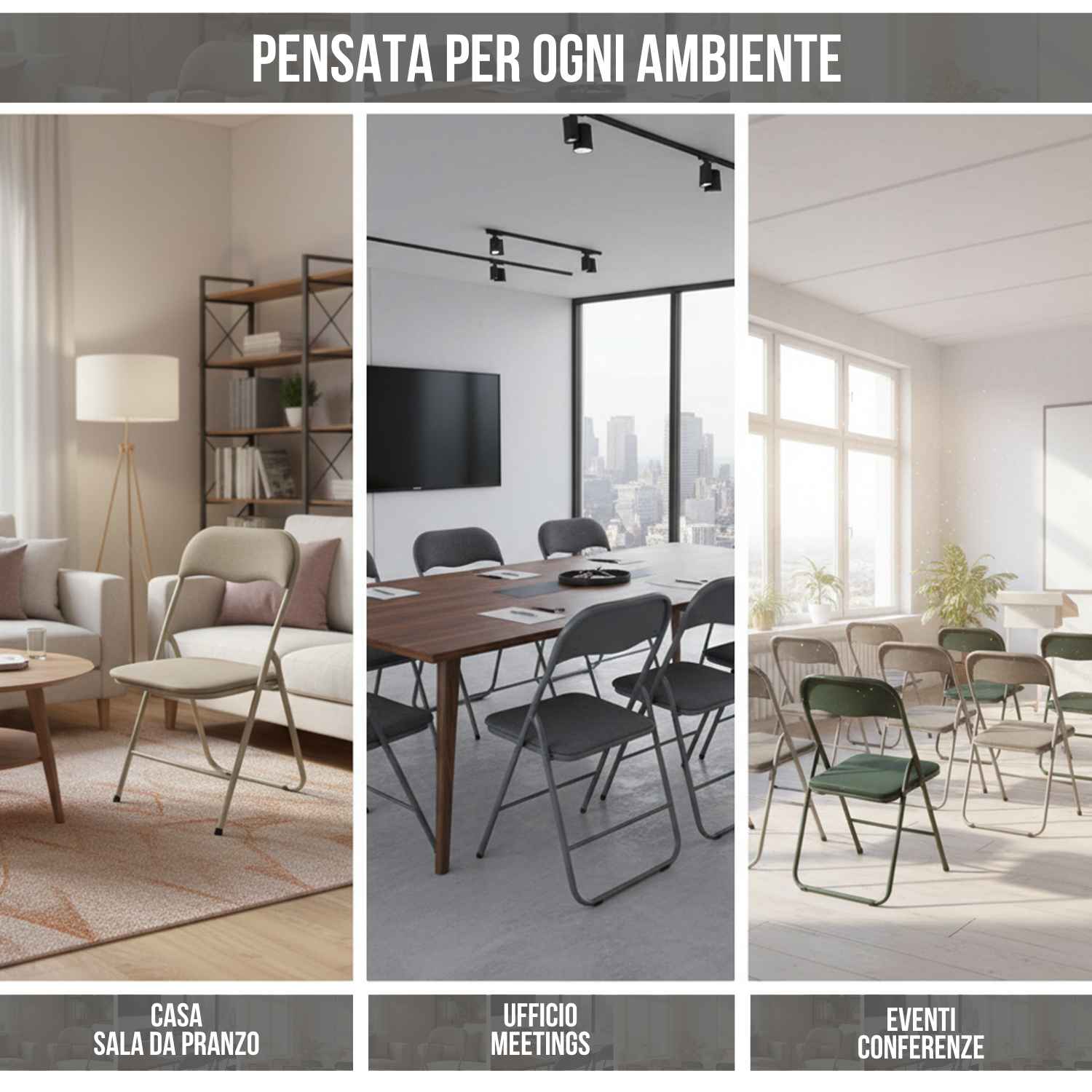 • SEDIA PIEGHEVOLE MODERNA E VERSATILE – La sedia Syria unisce design contemporaneo e praticità, ideale per cucina, soggiorno, ufficio o eventi, offrendo una soluzione elegante per ogni ambiente.